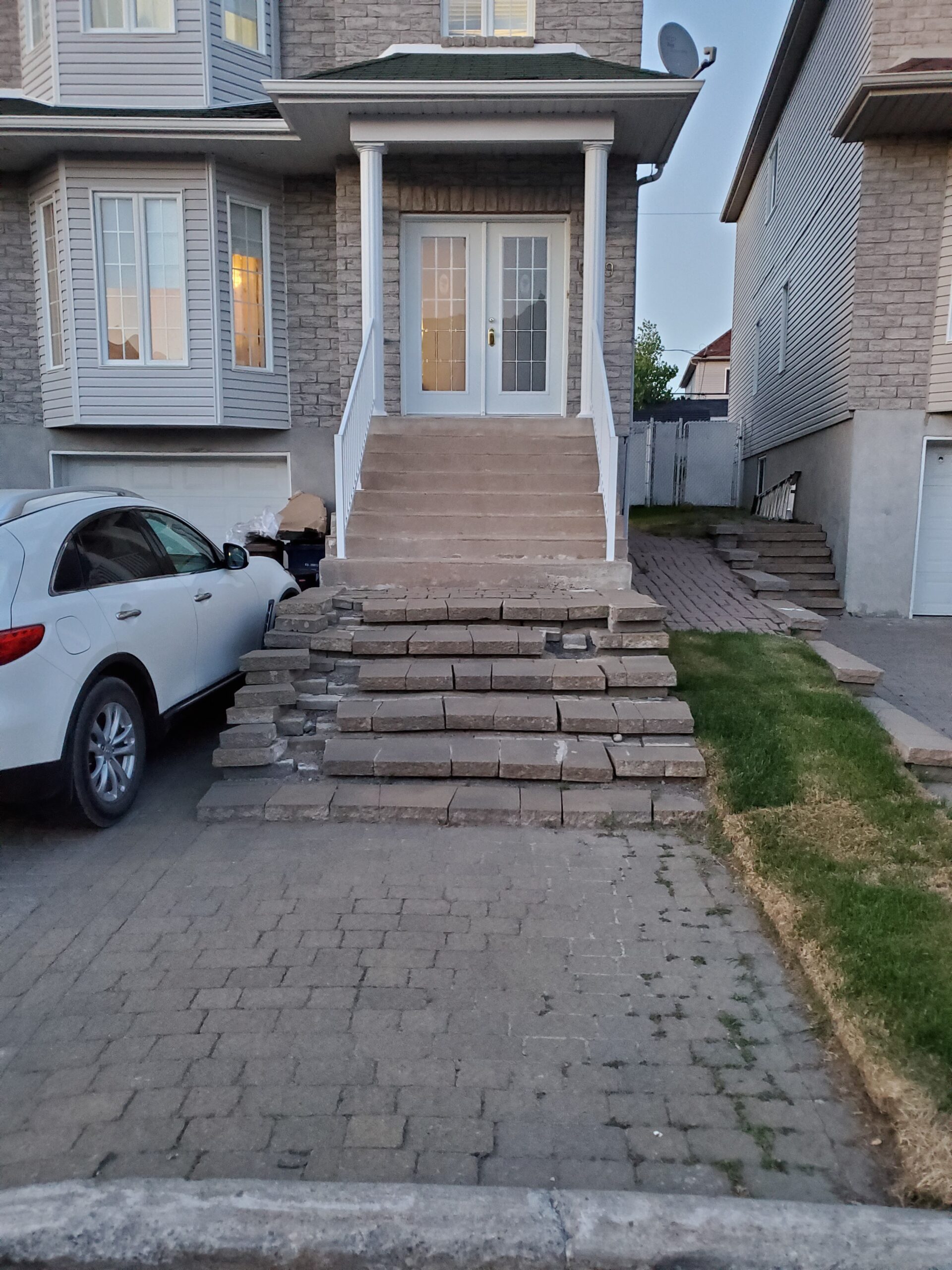 Ce projet a vu la métamorphose d’un espace extérieur autrefois banal en un magnifique aménagement paysager. Avant, des escaliers et des pavés usés étaient présents, mais pendant les travaux, une équipe dévouée a revitalisé l’ensemble, créant des escaliers élégants et des pavés soigneusement agencés. Le résultat final est un espace extérieur rénové qui allie fonctionnalité et esthétique, offrant un lieu accueillant et charmant pour profiter de moments de détente en plein air.
